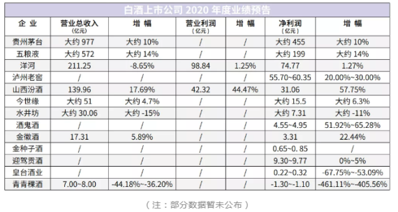 2020年是場(chǎng)“拉力賽”——在疫情來(lái)襲的背景下,面對(duì)復(fù)雜多變的宏觀環(huán)境和愈加激烈的競(jìng)爭(zhēng)形勢(shì),行業(yè)又來(lái)了一輪洗牌。如今,隨著2020年的塵埃落定,各家上市酒企也紛紛交出了自己的成績(jī)單或業(yè)績(jī)預(yù)告。