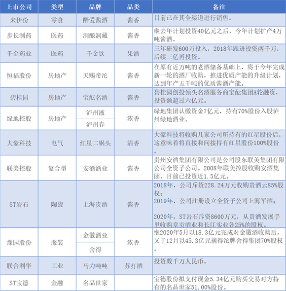 通過對近年來跨界白酒板塊的上市酒企的梳理,微酒記者發現可以歸納出以下四個特點。