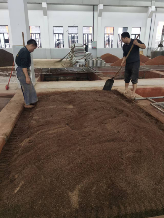 臨近端午,氣溫升高,此時微生物最為活躍豐富,是一年中釀酒的最好季節。樂坊酒業釀酒工人在此時節奏響了醬酒釀造的華麗樂章。端午制曲,是醬酒釀造過程中一個古老、原始且不可或缺的步驟,具有極為鮮明的地域特色。在樂坊酒業釀酒人心目中,播曲、潤曲、拌曲…端午制曲中的每一個環節皆十分神圣,所以必須鄭重其事。