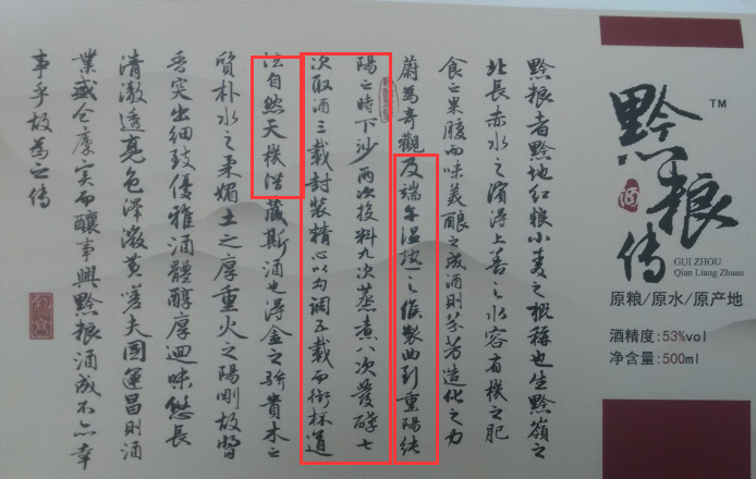 黔糧傳在其文章中這樣寫到,“及端午溫?zé)嶂笾魄街仃?yáng)純陽(yáng)之時(shí)下沙,兩次取酒、九次蒸煮、八次發(fā)酵、七次取酒,三載封裝精心以勾調(diào),五載而掀杯,道法自然,天機(jī)潛藏。”