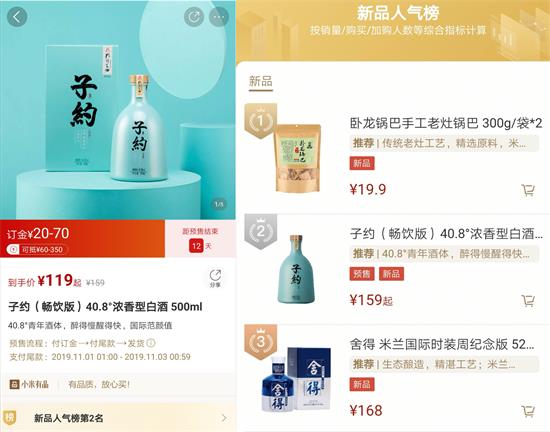 子約在海外開新聞發布會,中韓兩國同步預售,上線當天便斬獲小米有品新品人氣榜酒類冠軍。酒水行業研究者歐陽千里認為,子約持續走紅并不意外,伴隨著國潮回歸,白酒行業面臨著變革的壓力,五糧液推出第八代產品、瀘州老窖特曲推出第十代產品,都在擁抱新消費。在新消費的背景下,新產品通過新媒體的傳播,助推在新渠道的銷售,從而形成一個新品牌。反觀子約,是孔府家酒推出的創新產品,后通過微博、微信、抖音等新媒體的傳播,助推其在小米有品等新渠道實現熱銷,從而培育了一個全新品牌。