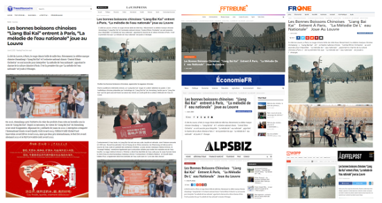 中國文化的全新表達,引起了法國路易通訊社、法國經濟在線、友好巴黎、埃菲爾郵報等多家海外主流媒體的關注報道。法國路易通訊社在報道中表示,“中國好水涼白開走進巴黎”以跨越時空的感官盛宴,讓遠隔萬里的人們體會到中國文化的魅力。法國權威的經濟媒體法國經濟在線評價稱,“中國好水涼白開走進巴黎”為世界了解中國文化打開了新的窗口,助力不同文明之間的深層次交流。