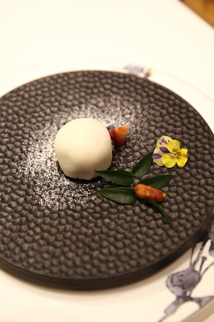 手工制作的迷你小油條,釀入蟹粉、和牛粒;細白軟糯的雪媚娘,裹住用黃酒、話梅、蜂蜜等原料浸泡而成的蟹黃蟹膏、以及熱帶水果和奶油。伴一絲清甜,佐一縷芬芳 ,冷熱交替的醇香裹挾味蕾,輕盈卻不失風味的重量。