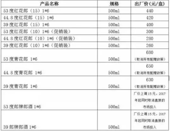 1月5日,四川古藺郎酒銷售有限公司下發《關于紅花郎系列產品及郎牌郎酒價格調整的通知》(以下簡稱“通知”),在通知中對紅花郎系列產品以及郎牌郎酒出廠價格進行全面調整,其核心單品53度紅花郎10和53度紅花郎15出廠價上漲幅度為10%。