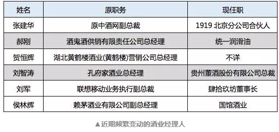 一是企業被收購兼并,酒鬼酒股份公司副總經理郝剛,賀恒輝,都是這一原因。企業股東的變化,導致營銷管理這一核心職位發生變動;