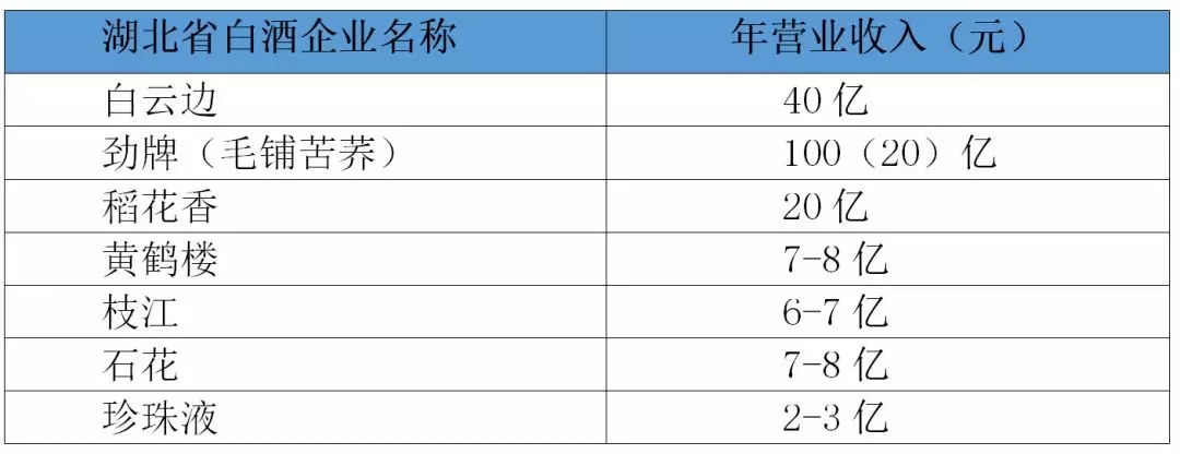 目前,湖北白酒品類中的雙強為連續6年營收穩定在40億以上的“鄂酒領頭羊”白云邊和勁牌旗下2013年面市、規模在20億左右的“后起之秀”毛鋪苦蕎酒。此外,還有稻花香、黃鶴樓、枝江、石花等強勢知名省酒品牌。