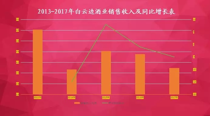 ▲2013-2017年白云邊酒業銷售收入及同比增長表