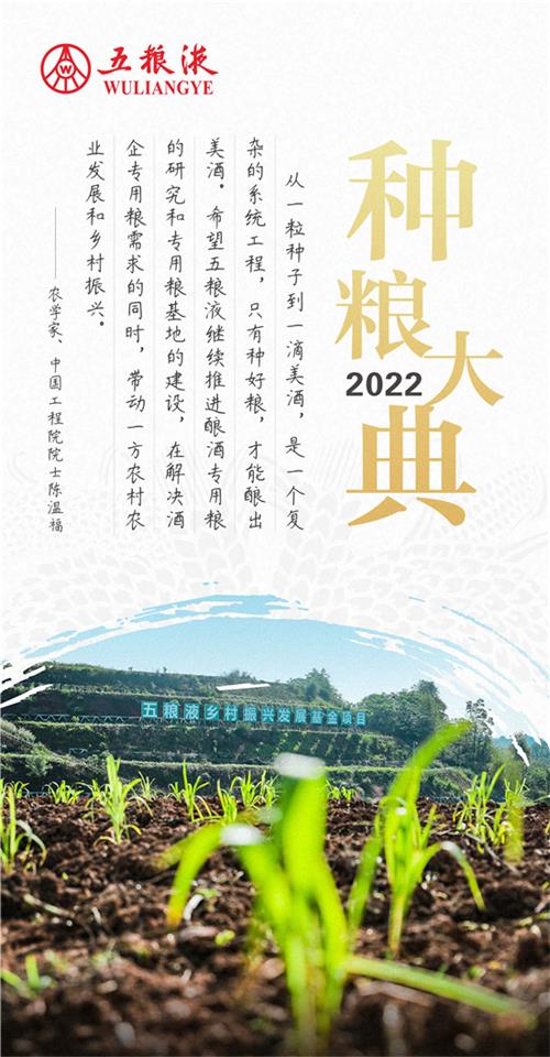 曾從欽表示,五糧液將在基地建設(shè)過程中,走生態(tài)優(yōu)先、綠色發(fā)展之路,為生態(tài)五糧液渲染亮麗底色;堅(jiān)持構(gòu)建“從一粒種子到一滴美酒”的產(chǎn)品全生命周期質(zhì)量體系,為品質(zhì)五糧液筑牢堅(jiān)實(shí)核心;深挖農(nóng)耕文化、產(chǎn)地文化和技藝秘訣,為文化五糧液增添豐富內(nèi)涵;推進(jìn)專用糧種植標(biāo)準(zhǔn)化、精準(zhǔn)化、智慧化管理,實(shí)現(xiàn)原糧100%可預(yù)檢、可追溯、可管控,用數(shù)字五糧液賦能科學(xué)種植、科學(xué)管理;健全公平公開的專用糧合作機(jī)制,實(shí)現(xiàn)共商共建共享,用陽光五糧液厚植堅(jiān)強(qiáng)保障。