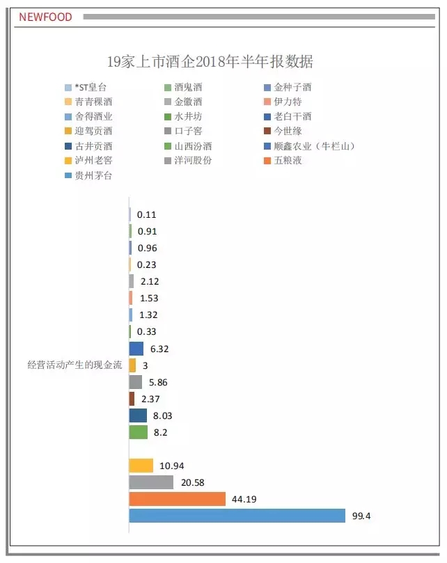 一位業(yè)內(nèi)人士認(rèn)為,預(yù)收賬款不僅是企業(yè)下游議價能力的體現(xiàn),也是收入的先行指標(biāo),預(yù)收賬款大幅增加的企業(yè),收入接下來大概率也會增加。根據(jù)半年業(yè)績報告,19家白酒上市酒企預(yù)收款項增加較為明顯的有5家,分別為古井貢酒、老白干酒、金徽酒、青青稞酒、以及*ST皇臺。